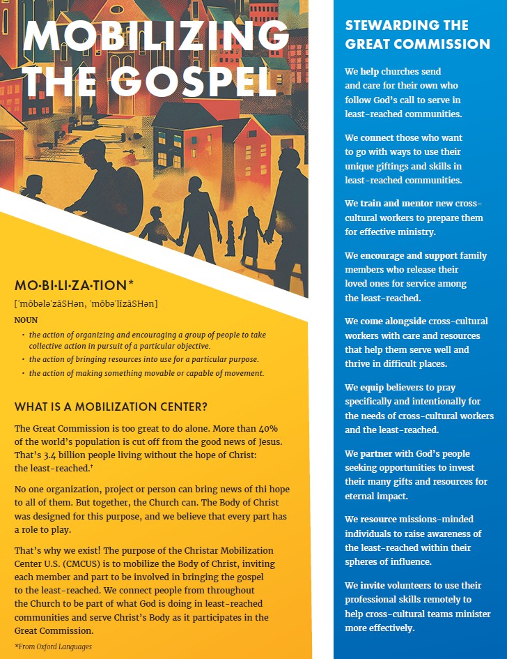 Explore the various roles in stewarding the Great Commission through this double-sided document that introduces how every believer is called.