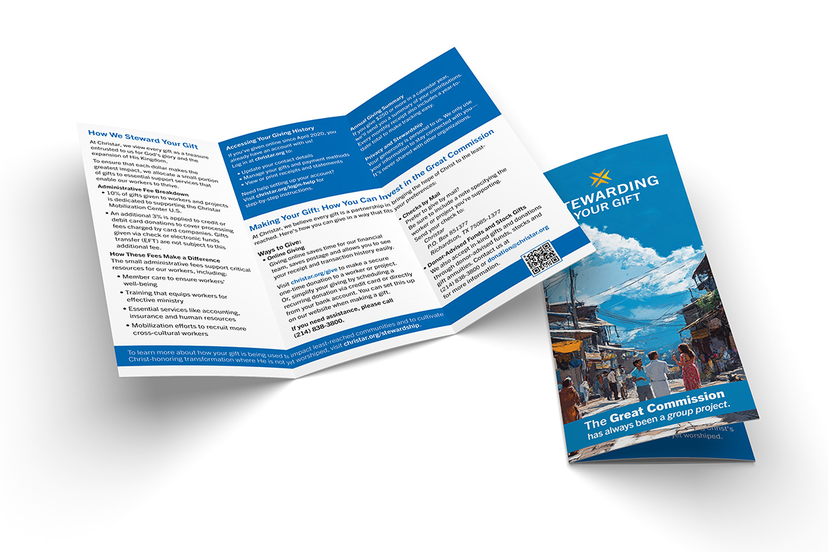These brochures are sent automatically to any new donor, and it may answer questions potential donors might be asking. Most of the content is also available on the Christar website.